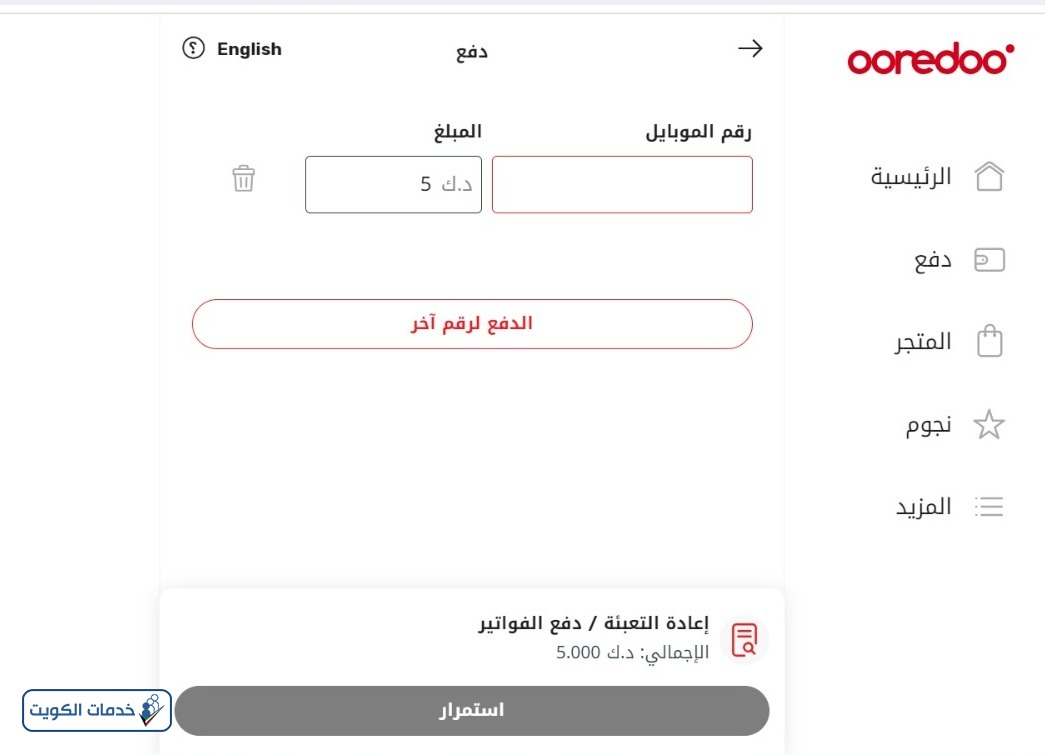 رابط موقع دفع فواتير اوريدو الكويت اون لاين 2026