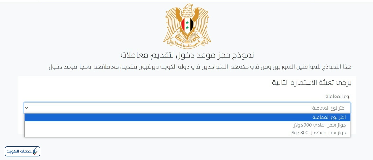 - فتح صفحة حجز موعد تجديد جواز السفر السوري في الكويت “من هنا“.