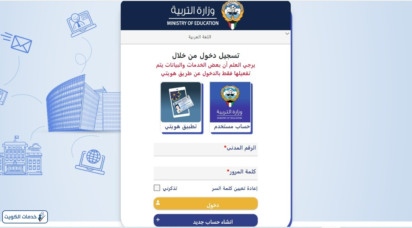 - إدخال الرقم المدني وكلمة المرور في حال استخدام الحساب، أو إدخال الرقم في حال المصادقة عبر هويتي.