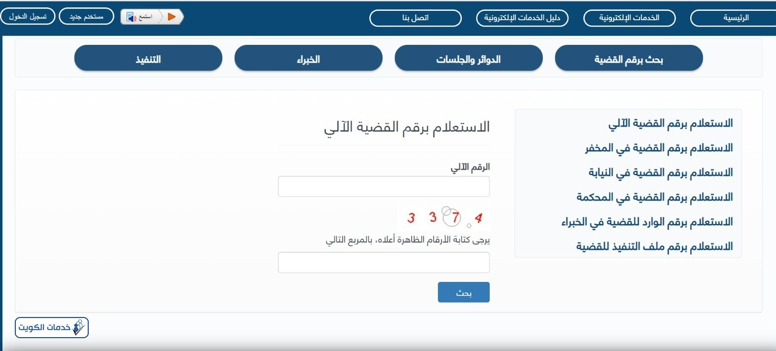 يمكن الاستعلام عن القضايا في وزارة العدل الكويتية عبر اتباع الخطوات التالية: [1]