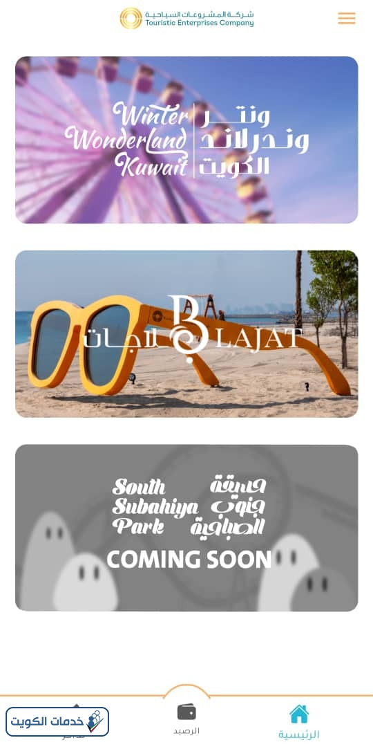 خطوات حجز تذاكر ونترلاند عبر تطبيق المشروعات السياحية